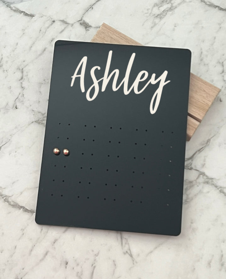 Personalise this functional and stylish earring stand as a gift, or for yourself. Holding 30 pairs of studs, you'll never lose a pair of earrings again.
